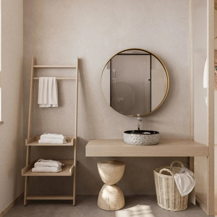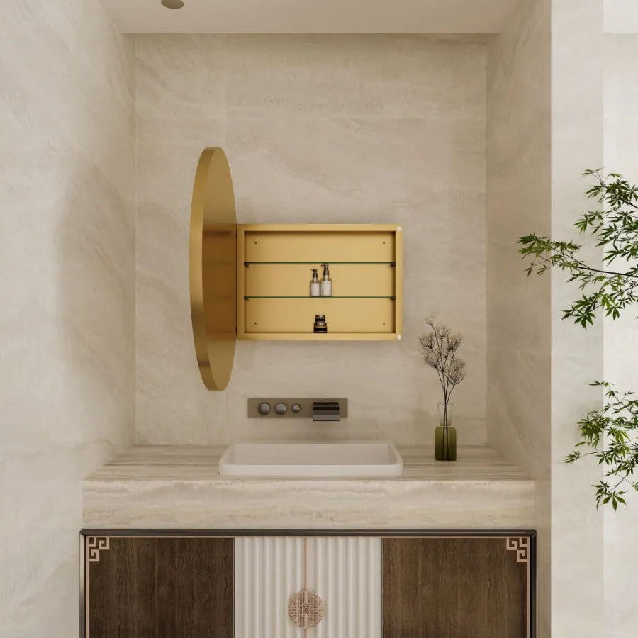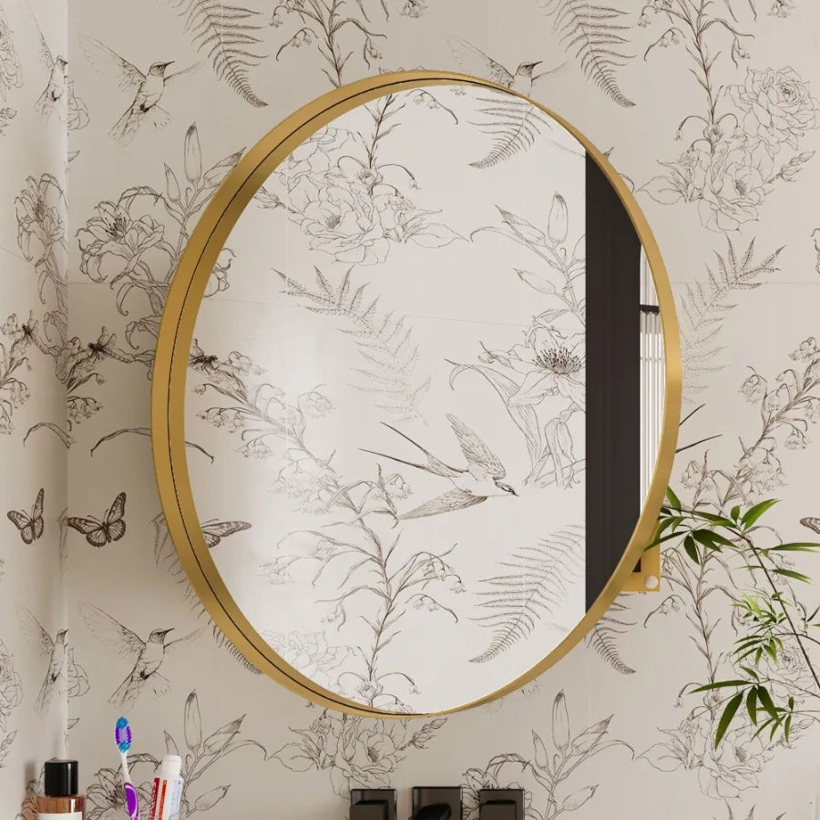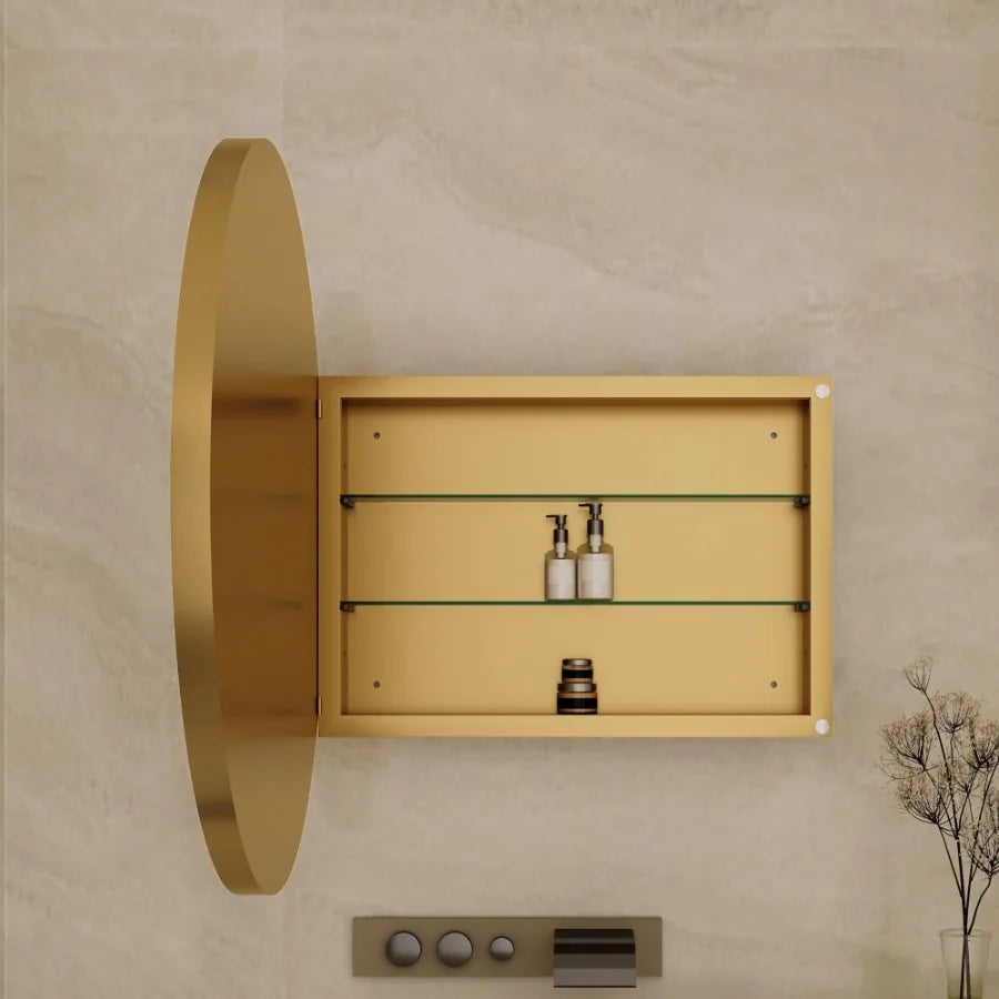 31.5 Inch Surface Mount Round Metal Framed Medicine Cabinet with Mirror and Adjustable Shelves Black Wall Mirror with Storage f