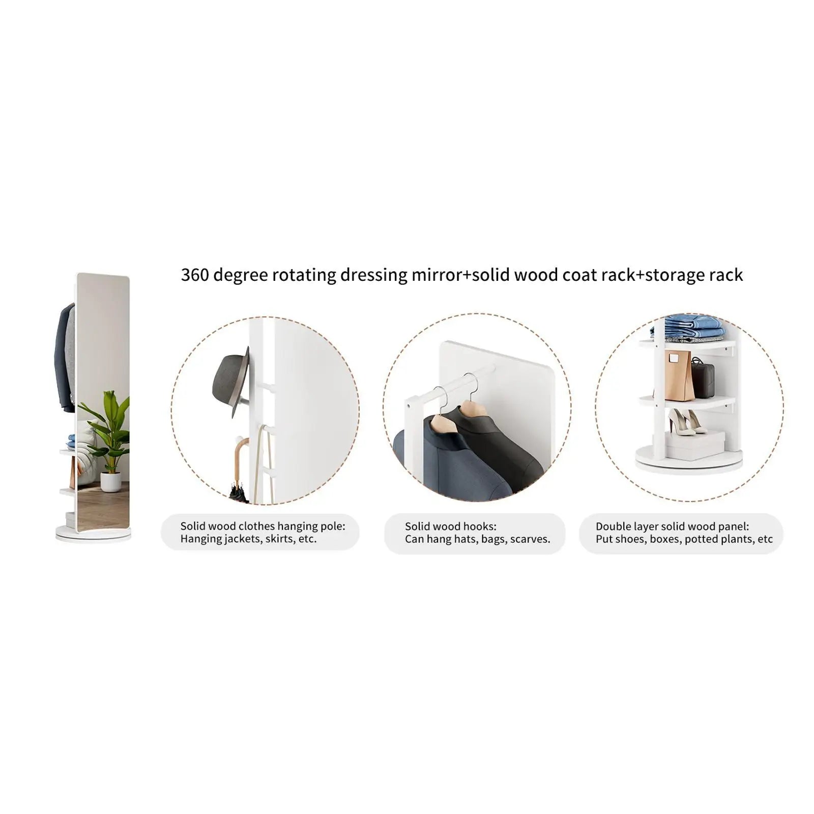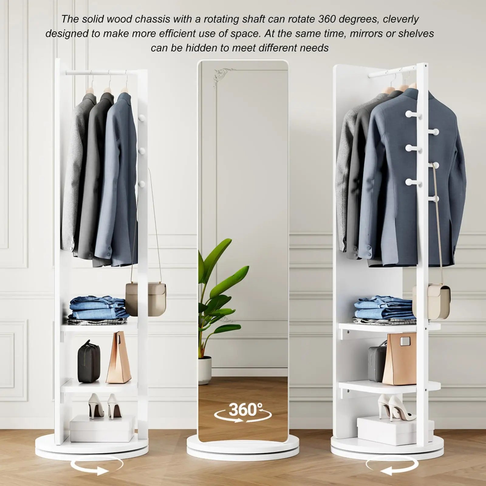 Versatile: The 360° rotating design is very convenient to look in the mirror or take clothes. Suitable for bedroom, living room, cloakroom, home gym, corridor, clothing store and other places.