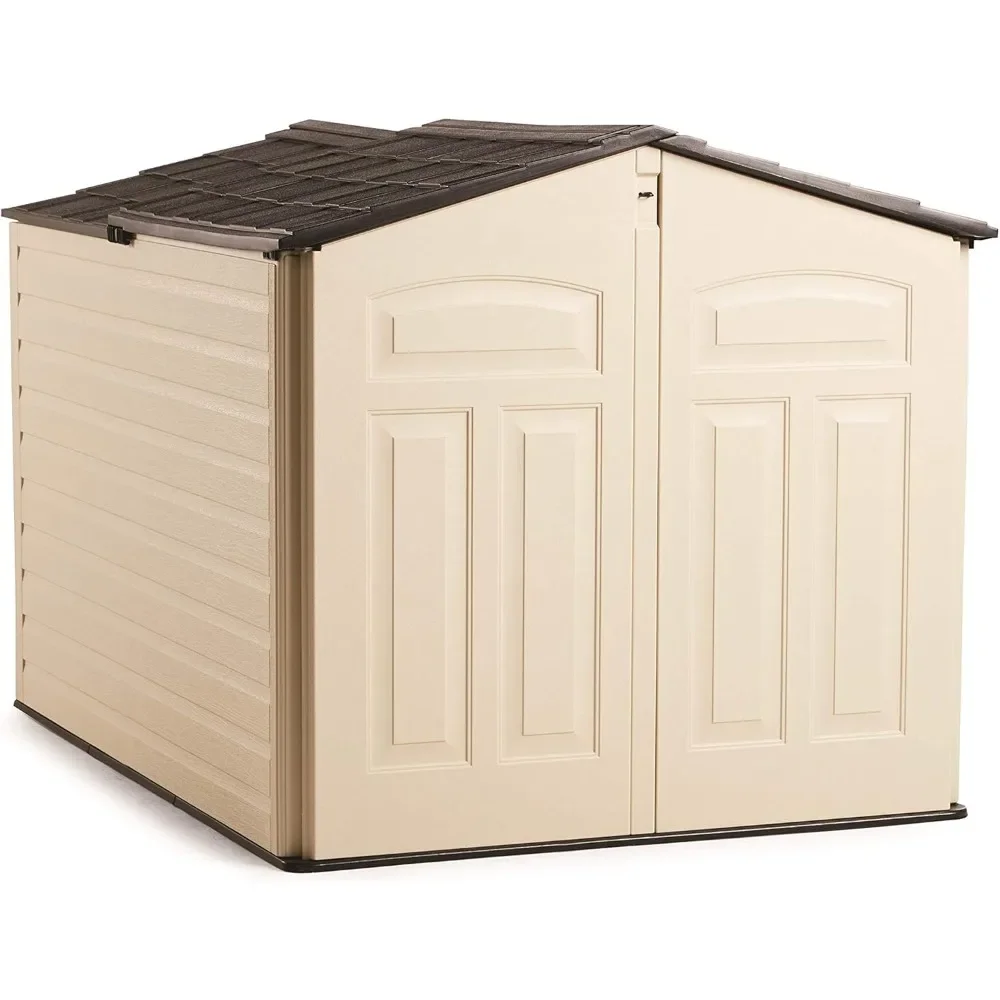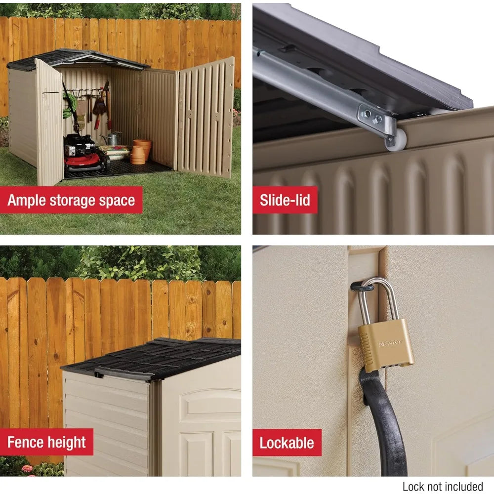 Customizable-Slide-Lid Resin Outdoor Storage Shed (5 X 6.5 Ft),Weather Resistant, Beige/Brown, Organization For Home/Backyard/Ga