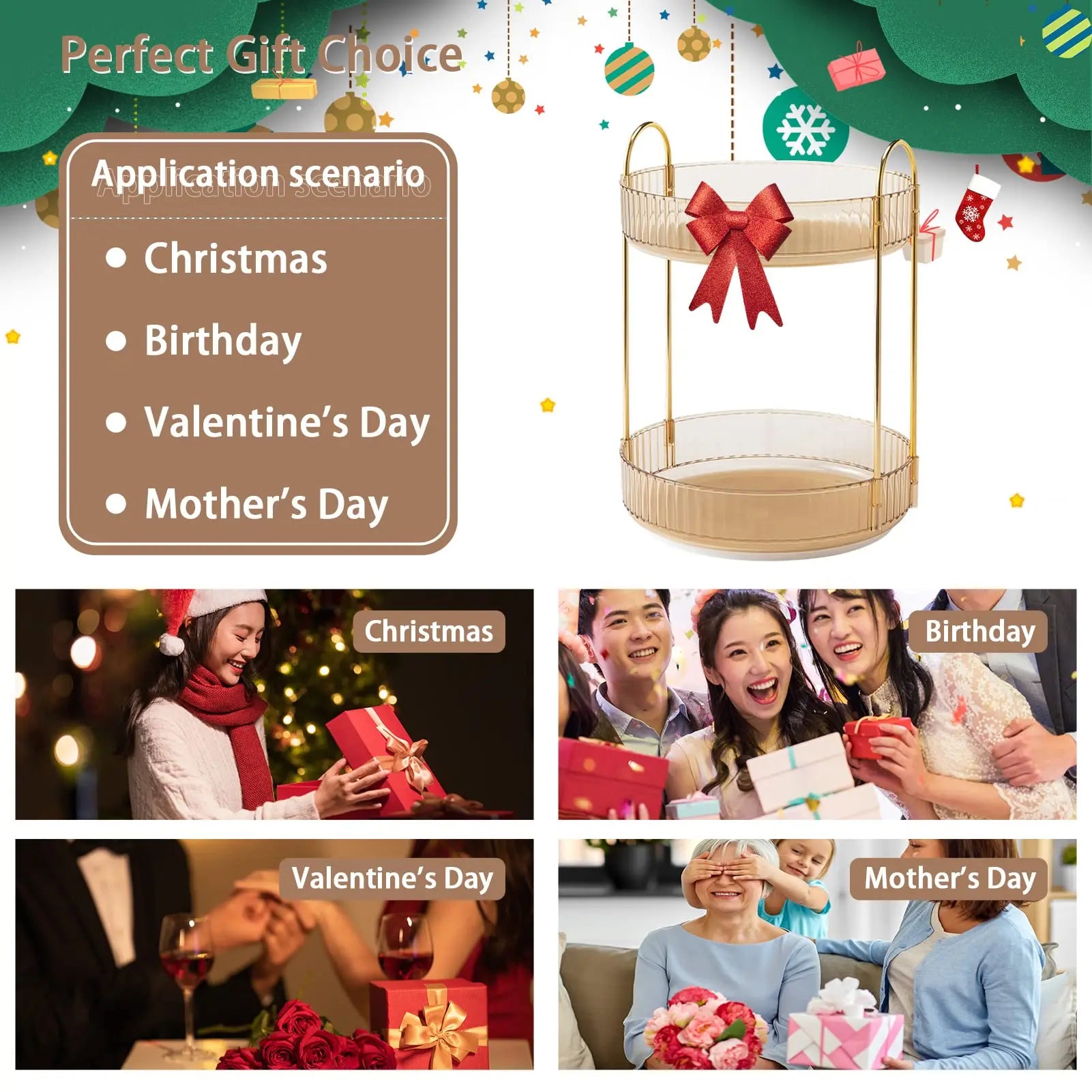 š ćDesign 360 Rotationć360 degree easy rotation can bring you a more convenient experience, The rotating base is smooth, and the tray edge is high enough to prevent cosmetics from falling when rotating makeup, which is suitable for all your cosmetics